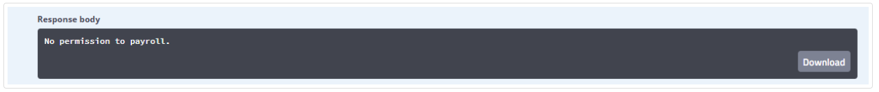 If the user does have access to the API Endpoint, the PSIberAPI will then check if the user does have access to the specified payroll. If the user does not have access, the response body will return 'No permission to payroll'.